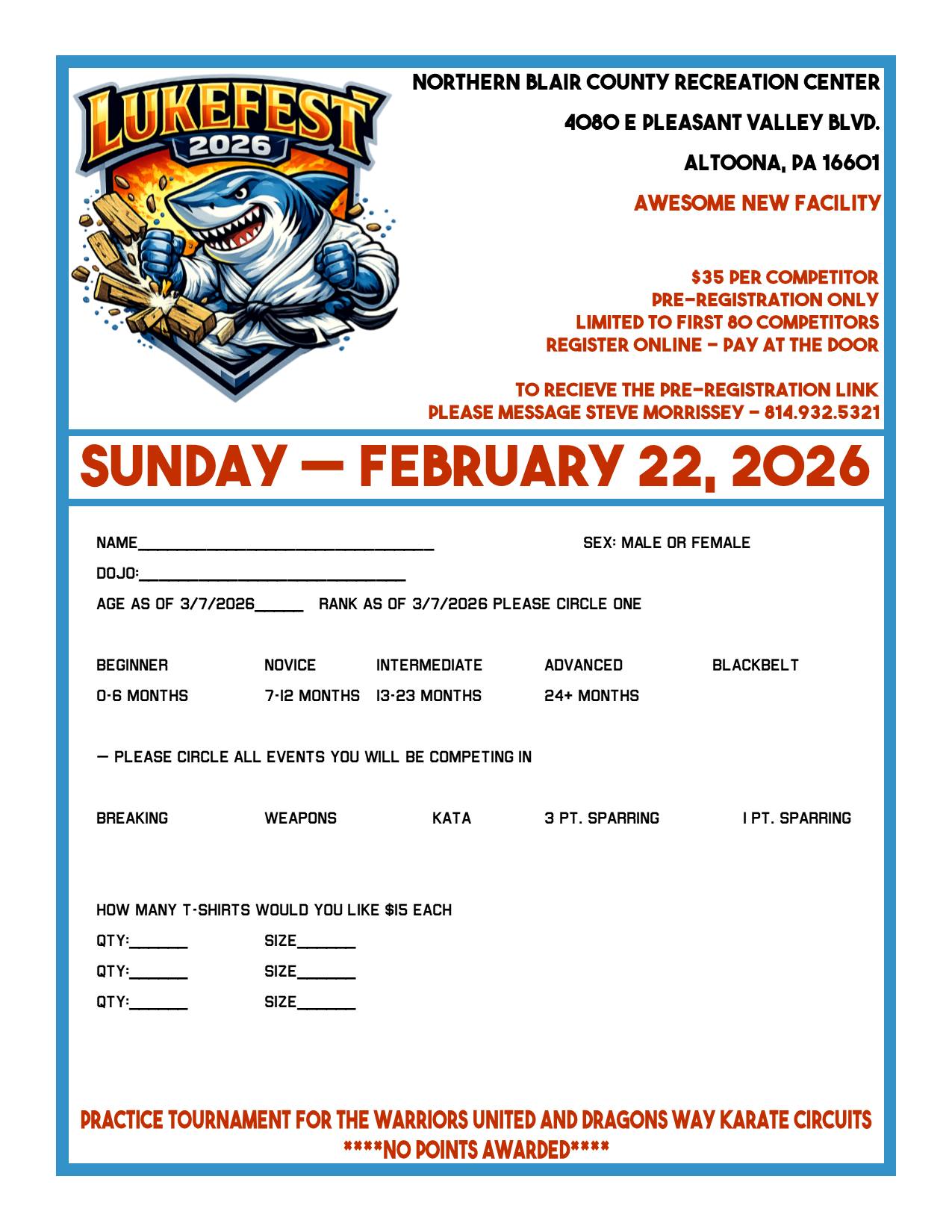 LUKEFEST 2025 is NOT an official Warriors United Event. It is a practice event using Warriors United rules & equipment. NO POINTS WILL BE AWARDED.